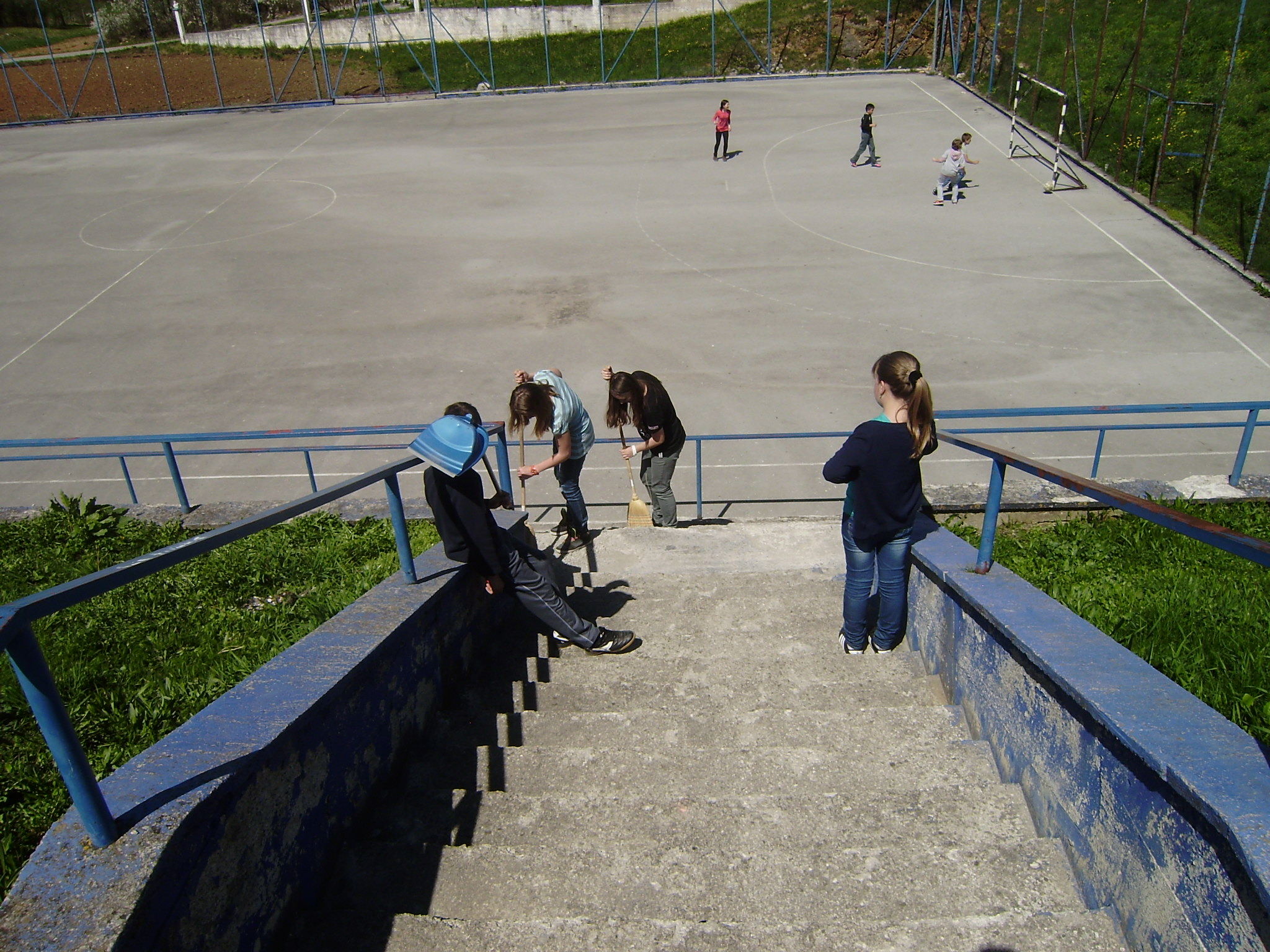 Učenice šestog razreda su pomele tribine na igralištu i tu i tamo priskakale u pomoć malenima u sadnji cvijeća.